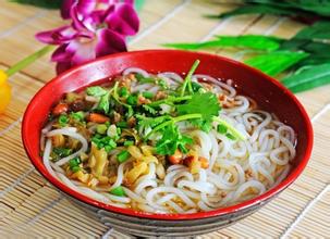 桂林米粉是历史悠久的小吃。以其独特的风味远近闻名。其做工考究,先将上好的早籼米磨成浆,装袋滤干,揣成粉团煮熟后压榨成圆根或片状即成。圆的称米粉,片状的称切粉,通称米粉,其特点是洁白、细嫩、软滑、爽口。其吃法多样。三味粉屋认为,制作最最讲究卤水的制作,其工艺各家有异,大致以猪、牛骨、罗汉果和各式佐料熬煮而成,香味浓郁。卤水的用料和做法不同,米粉的风味也不同。大致有生菜粉、牛腩粉、三鲜粉、原汤粉、卤菜粉、酸辣粉、马肉米粉、担子米粉等.